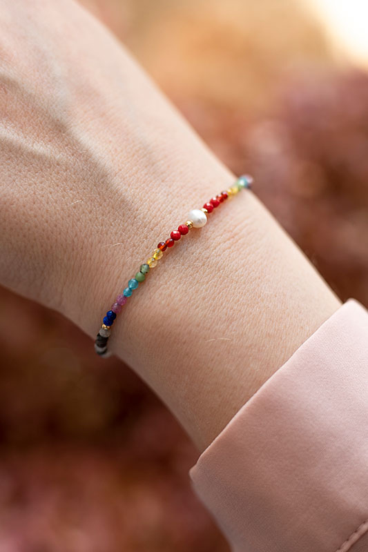 The bracelet consists of a freshwater pearl, natural stones sized 2mm, and a clasp made of stainless steel. Strung on a silk thread. The bracelet is adjustable. The stones used in the bracelet are natural and may vary slightly in color from the photo.